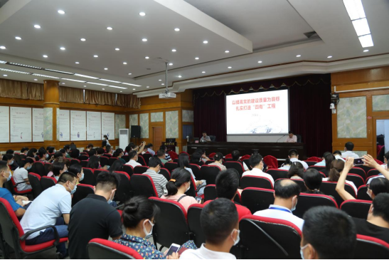 为进一步贯彻落实习近平新时代中国特色社会主义思想,加强我院基层党建和文化建设,5月13日下午,我院邀请广东省卫健系统思想政治工作研究会常务副会长亓玉台来院作专题辅导讲座。医院领导,机关科室科长、副科长,职能、临床、医技科室主任、副主任,护理单元护士长、副护士长,全体党员共120余人参加了学习。党课由党委书记严冬主持。