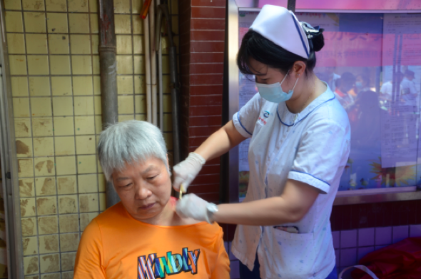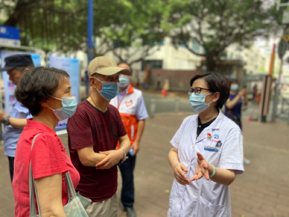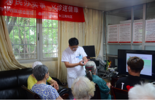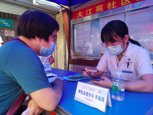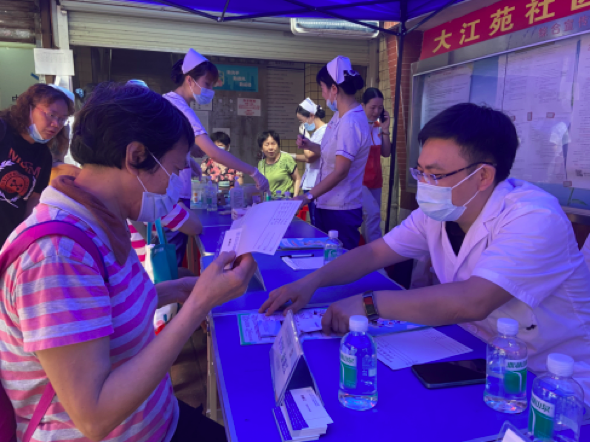 本次活动前期,党支部与赤岗派出所、大江苑居委会联系,了解群众的实际需求,提前分析布点,活动持续一个上午,百余名居民前来健康咨询。大江苑居委会主任提到,社区老年病人、心血管病人居多,“家门口”的医疗便民服务切实解决了社区老年人的健康需求,为民众带来实实在在的便利,真正把服务送到社区及居民身边,希望医院能够长期开展定点上门医疗服务,切实提升他们的健康生活观念。