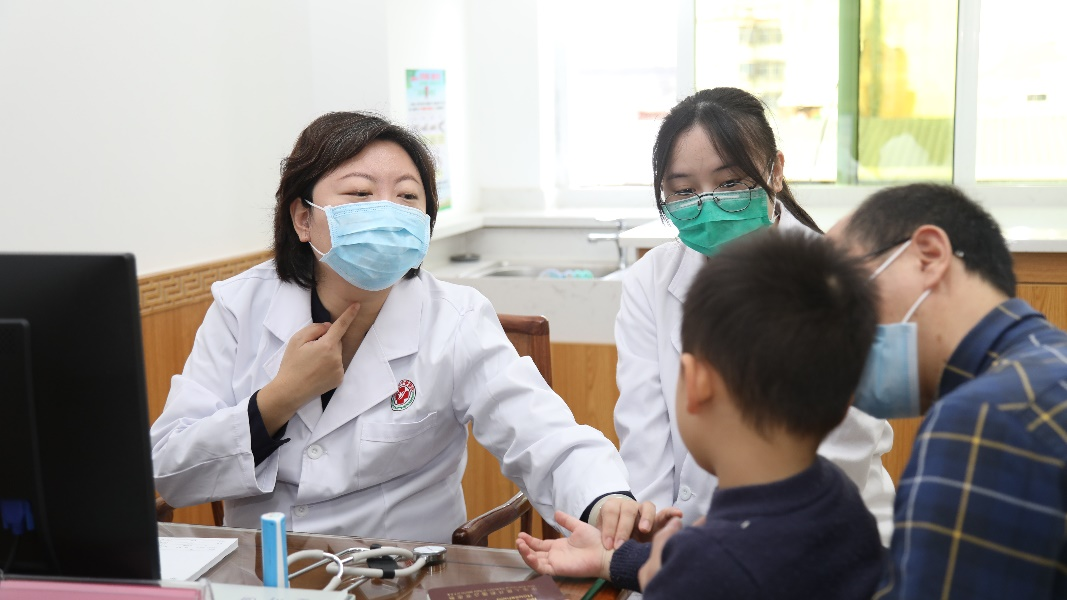 耳鼻咽喉科负责人王荣华给小患者做检查