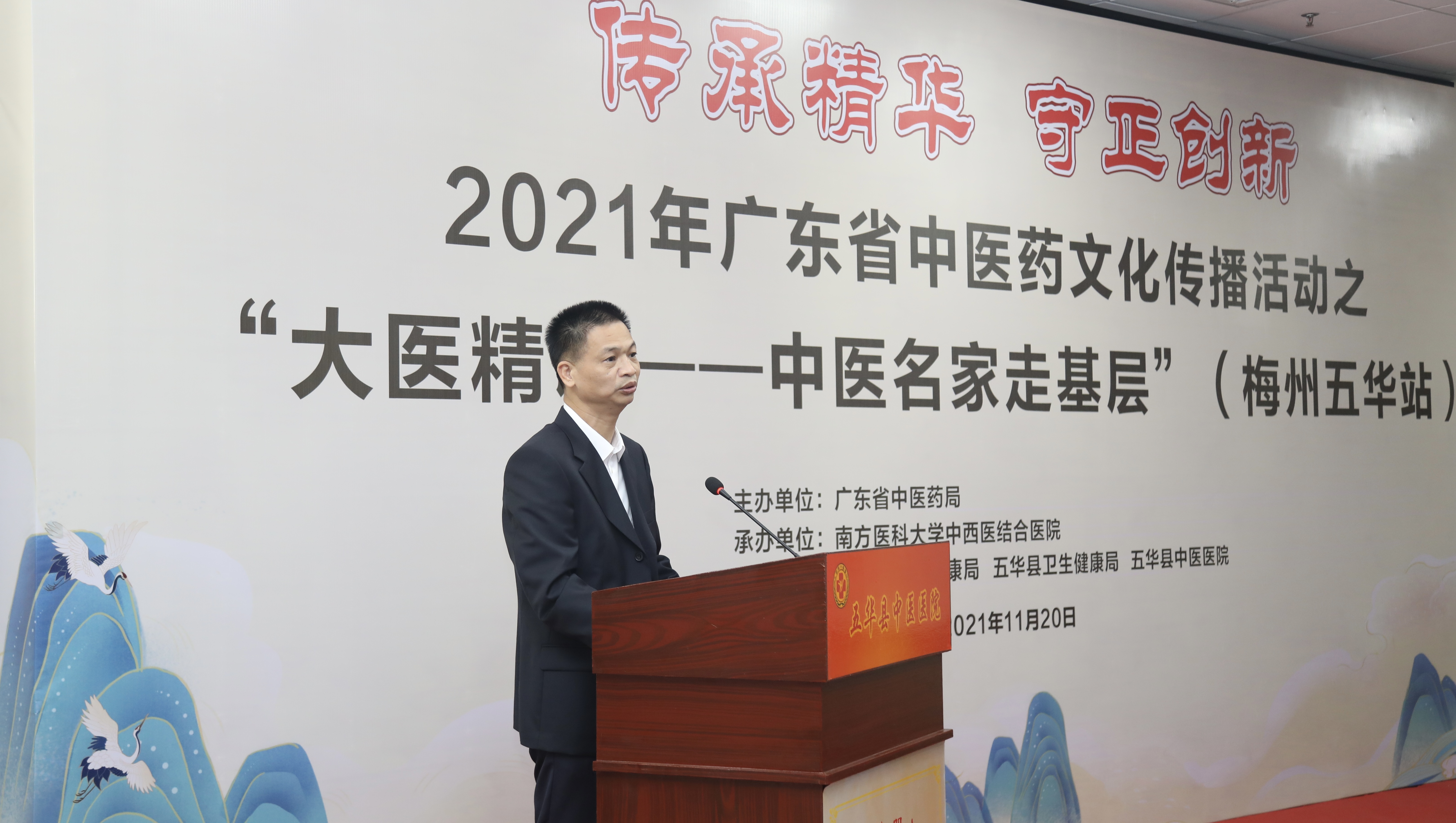 本次活动由广东省中医药局主办,南方医科大学中西医结合医院承办,梅州市卫生健康局、五华县卫生健康局和五华县中医医院协办。南方医科大学中西医结合医院院长李爱民、五华县副县长邝逸平、五华县政协副主席、卫生健康局局长刘锐锋、省卫生健康委四级调研员闵娜、五华县卫生健康局副局长刘志中、五华县中医医院党委书记刘裕青、五华县中医医院院长张学山等领导、专家与嘉宾出席了活动开幕仪式。