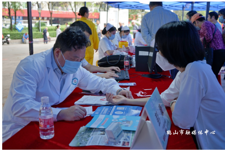 随后,在我市北湖广场举行大型义诊活动。活动进行了中医养生八段锦表演。现场设置了多个专科诊台,两家医院的专家耐心为市民诊疗。