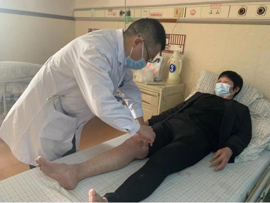 南方医科大学中西医结合医院神经外科主任陈陆馗教授为腿麻患者做检查