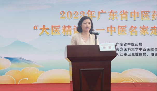 阳西县副县长曾菲在致辞中指出:“希望南方医科大学中西医结合医院多多传经送宝,将新的中医药技术传送到阳西县,为县中医药事业发展增添新动力。希望县中医医院抓住这个良好的契机,加强与南方医科大学中西医结合医院沟通交流,虚心向各位专家学习,进一步提升阳西县中医药技术水平。”