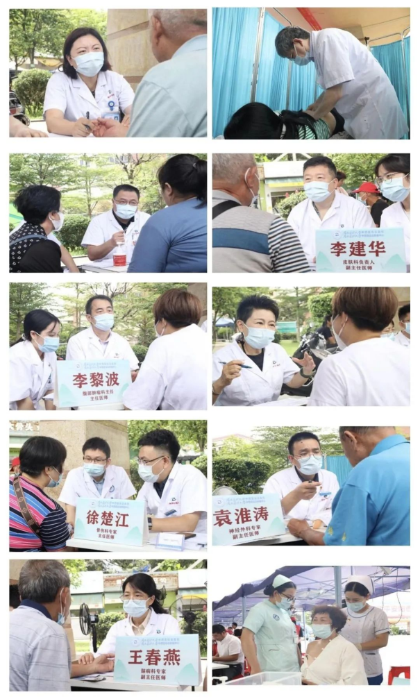 5月27日,南方医科大学中西医结合医院神经外科、针推康复科、脑病科、风湿病科、肾病科、腹部肿瘤科、腹部外科(普通外科)、皮肤科、骨伤科、呼吸科(胸部肿瘤内科)、妇科、中医护理共13名专家牺牲周末休息时间,从广州驱车4小时来到阳西县,零距离为群众健康把脉、开处方,为市民以及耳穴刮痧、艾灸等中医特色护理服务、免费测血糖血压等。