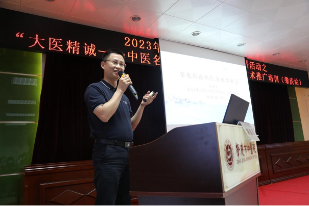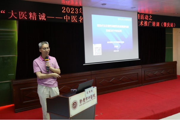 6月17日下午,中医适宜技术培训班在肇庆市中医院9号楼会议室举行。南方医科大学中西医结合医院骨伤科学术带头人汪青春教授、风湿病科副主任医师陈恩生、广东省中医专科护士陈晶晶分别做《透热针治疗顽固性肌筋膜源性颈腰背痛》、《常见风湿病自身抗体解读》、《火龙罐在肿瘤患者中的应用》主题授课,肇庆市中医院和基层医疗机构共70余名医护人员参与了培训。