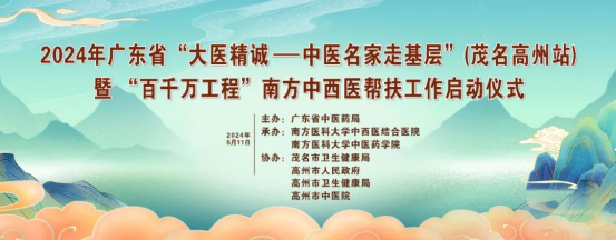 5月11-12日,由广东省中医药局主办、南方医科大学中西医结合医院、南方医科大学中医药学院承办的2024年“大医精诚——中医名家走基层”暨(茂名高州站)“百千万工程”南方中西医帮扶工作启动仪..