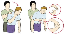 1、如果是成人,救护者站在受害者身后,从背后抱住其腹部,双臂围环其腰腹部,一手握拳,拳心向内按压于受害人的肚脐和肋骨之间的部位;另一手成掌捂按在拳头之上,双手急速用力向里向上挤压,反复实施,直至阻塞物吐出为止。