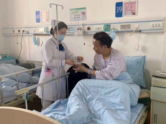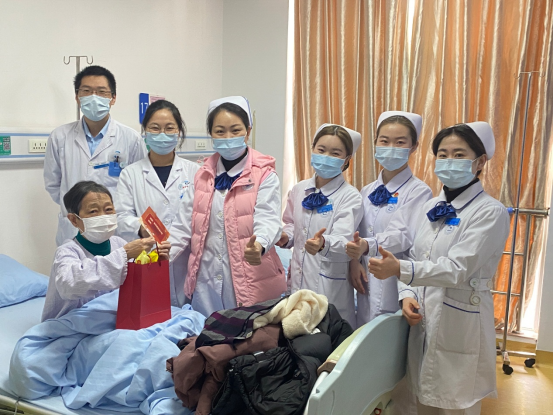 因肝癌住院的杨叔,是第一个收到汤圆的留院患者。子女因工作繁忙,只能周末过来陪伴,一个人留院的他,仅用2天就把科里的医生护士认识完,收到元宵美食时,高兴地对副号长涂红谕说:“中午梦见你了,下午你就来送饺子了,我还以为没人陪我过节了呢”。