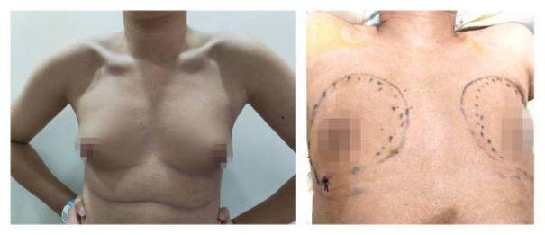 在父亲陪同下,阿华辗转来到南方医科大学中西医结合医院,甲乳血管外科罗云峰主任接诊后,诊断其为男性乳腺发育症,接近“C”罩杯。患者“缩胸”意愿强烈,于是针对性制定了腔镜下双侧乳房皮下腺体切除术的治疗方案。