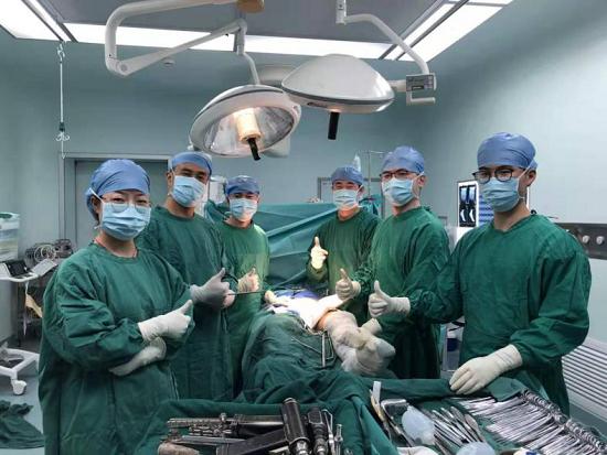 据了解,当时,患者左下肢肿胀,左大腿已变形,腰部、骨盆及左下肢剧烈的疼痛让患者痛苦不堪。患者随即转入骨伤科进一步治疗,骨伤科主任黄刚立刻成立了治疗小组,制定初步治疗方案,首先对车先生进行了左下肢骨牵引制动、消肿止痛、抑酸、预防血栓形成等对症治疗。疼痛的缓解以及生命体征的稳定给了车先生和家属极大的信心,车先生的情绪逐渐平稳了下来。黄刚深知车先生的病情极为复杂,骨折部位多达4处,且每个部位或涉及重要脏器,或骨折粉碎复位困难,治疗上都是极大的挑战。