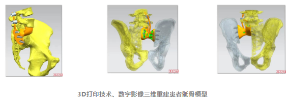 鉴于手术风险大,为保证手术顺利完成。骨伤科术前利用3D打印技术,数字影像三维重建患者骶骨模型,精准模拟术中腰骶骨盆重建方式,3D打印半骶骨假体,保证完美适配。
