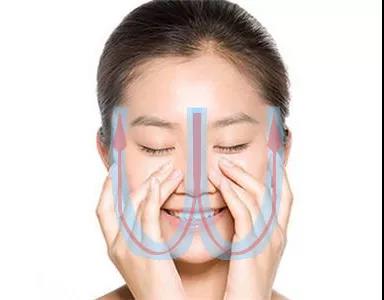 把双手搓热,从额头位置顺着鼻梁到下巴,按“U”字型来搓面部。