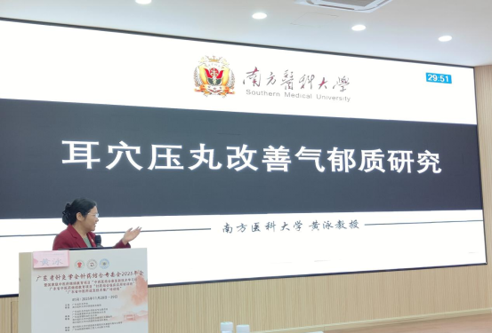 南方医科大学黄泳教授围绕耳穴压丸改善气郁质的研究展开分享,从中医体质理论出发,为亚健康调理提供了简便有效的方法(图8);