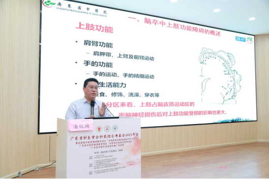 在临床技术分享板块,专家们结合丰富的实践经验,带来了极具参考价值的内容。广东省中医院神经康复科主任潘锐焕教授针对脑卒中上肢功能障碍这一临床难题,详细讲解了中西医结合康复的策略与实操经验(图5);