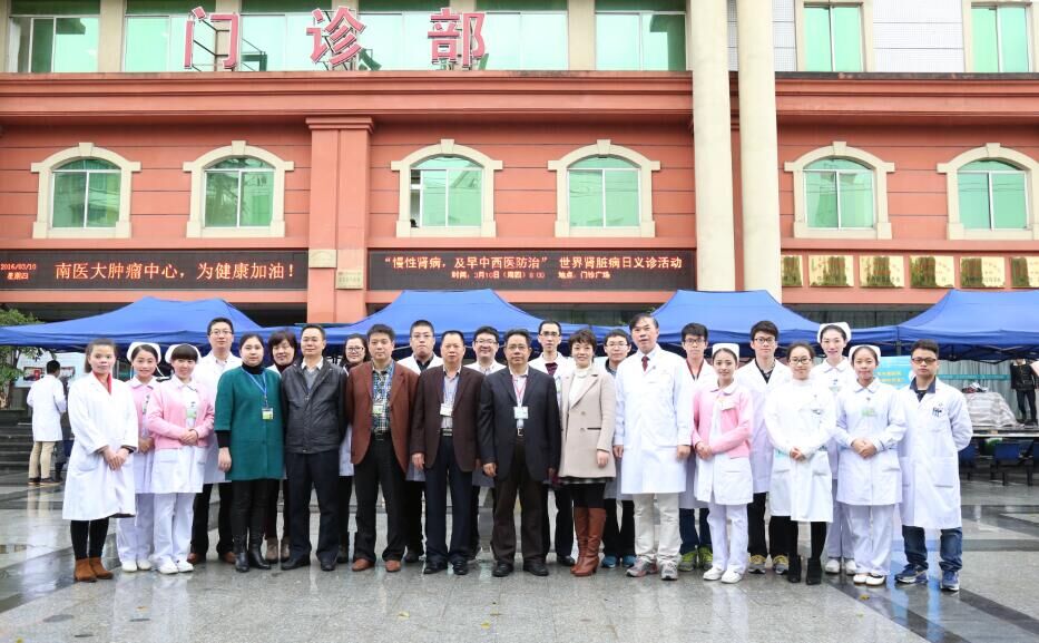 3月10日,迎着蒙蒙春雨,第十一届“世界肾脏病日”悄悄到来。为提高群众对慢性肾脏病及相关疾病的认识,让群众认识到早期检测和预防慢性肾脏病的重要性。南方医科大学中西医结合医院肾病科魏连波教授领衔的团队在医院门诊大楼前广场举办主题为“慢性肾病,中西医防治”大型公益义诊活动。