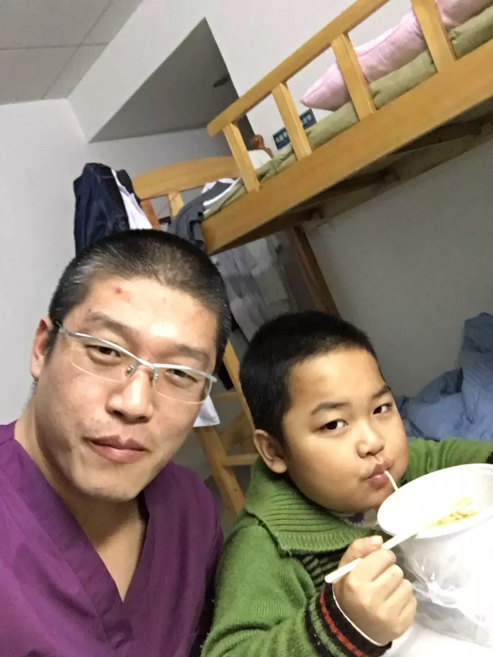 2017年8月14日晚,南方医科大学中西医结合医院微信群内,健康管理中心护士长张兰英发出这样一段话:路过湘水名居,无意透过窗户看见及医生和他的小病号在吃晚餐,好温馨的画面,隔着玻璃墙偷偷拍下了这一幕。很感人……