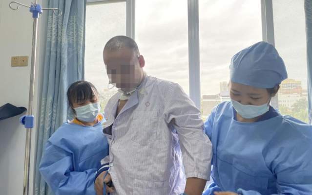 经过在神经外科重症监护病房近一月的护理,“无名氏”意识逐渐清醒,他告诉大家他姓余,但由于脑出血后遗症,他始终说不出他来自哪,而且身体右侧偏瘫,不能行走。
