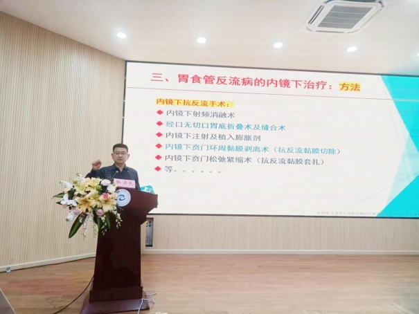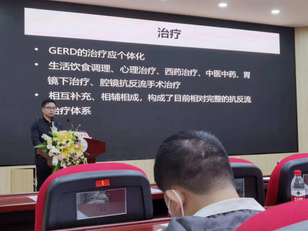 会议第一部分内容为胃食管反流病的中西医内科及内镜手术微创治疗,陈斌教授做《胃食管反流病的中西医结合诊治》专题报告,介绍了最新版胃食管反流病中医治疗指南的辨证分型与治法方药,分享了中医名家的独到辨证体系和用药经验。张卫民主任做《胃食管反流病的内镜微创治疗》主题报告,介绍胃食管反流病的发病机制、临床分期、治疗手段和预防调控,着重分享国外先进的内镜下治疗胃食管反流病的手术方式。
