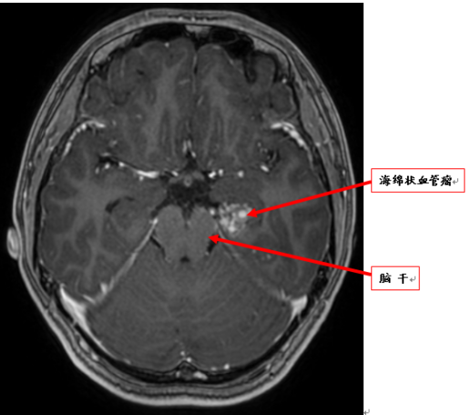 术前MRI:脑干海绵状血管瘤。