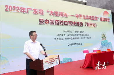 5月28日,2022年广东省“大医精诚—中医名家走基层”启动仪式暨中医药对口帮扶活动(潮州站)在潮州市中医医院顺利举办。本次活动由广东省中医药局主办,南方医科大学中西医结合医院承办,潮州市卫生健康局和潮州市中医医院协办。