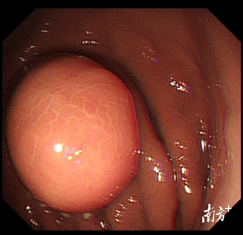 在内镜中心和麻醉科的紧密配合下,历时1个多小时成功切除并顺利取出直径超过3厘米大的肿瘤,由于是内镜下微创手术,术后不留手术瘢痕。