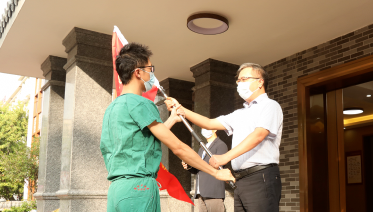 院领导为突击队授旗(来源:南方医科大学中西医结合医院)