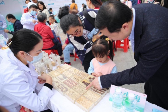 “小朋友,你知道这是什么吗?”“茯苓,妈妈经常用它煲粥给我吃。”现场,中药材辨识吸引了小朋友的关注。南方医科大学中西医结合医院药学部的志愿者们正向市民朋友讲解如何区别生活中常用中药材的真伪、优劣,活动吸引了市民群众的围观学习。