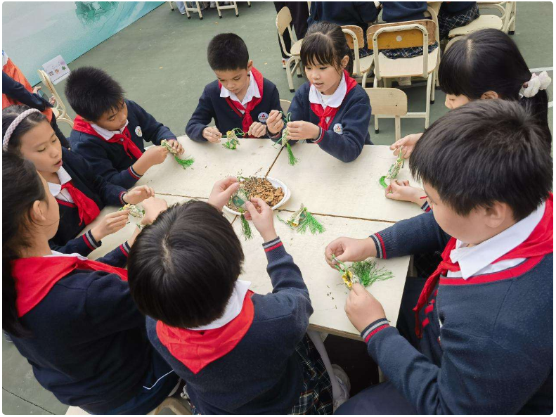 小朋友们围在一起兴趣盎然地研究起中草药、做中药香囊、学习中医养生小知识,“沉浸式”的中医药体验让他们乐在其中、学在其中。