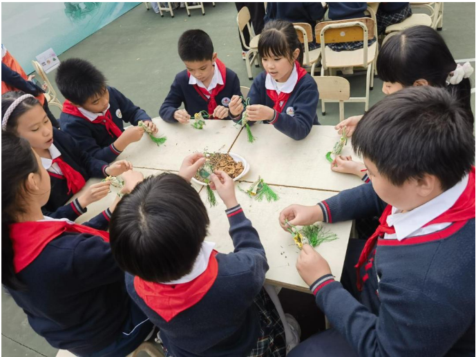 在陈列着中草药标本、中医用具的展示台前,16名小学生身穿白大褂,化身小小中医讲解员,向大家介绍中医药文化的知识;在操场上,辨识中药知识抢答、制作中药香囊小课堂,精彩的活动在医护志愿讲者的协助下进行;在教室里,中医专家正为高年级的孩子讲述中医的历史、名中医的故事……“沉浸式”的中医药文化体验让孩子们乐在其中、学在其中。
