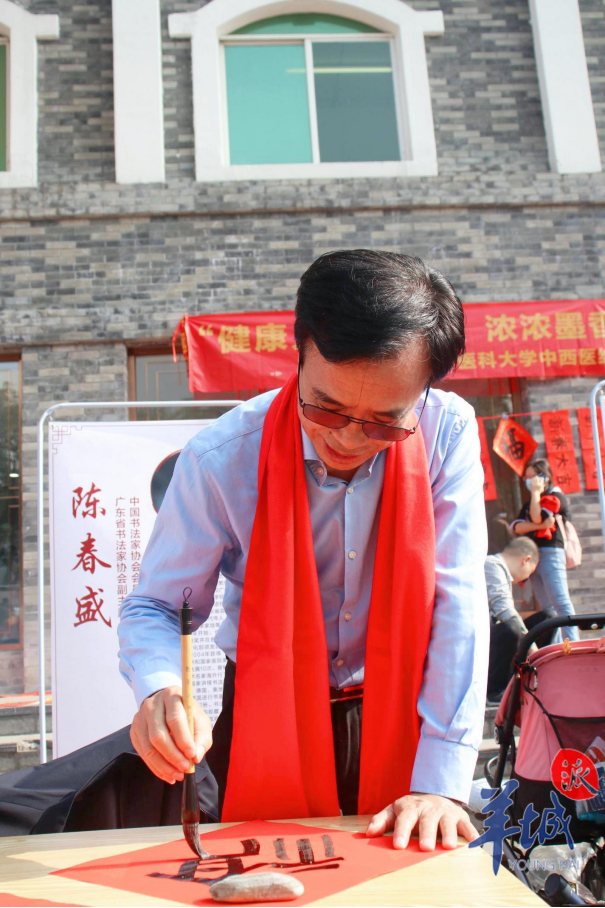 淡淡墨香,浓浓年味!1月16日,广东省潮联书画院联合南方医科大学中西医结合医院开展“迎新春送春联送健康”义诊活动,广东省潮联书画院廖宗怡、陈春盛、陈俊生、辜慧龙、许芝基、陈小敏、刘佐光、林潮和、郑友深等10名书画家现场送春联赠福字,挥毫泼墨为街坊送祝福。现场还设置有专家义诊、咨询服务,拉近文化、医务工作者与群众、患者的距离。