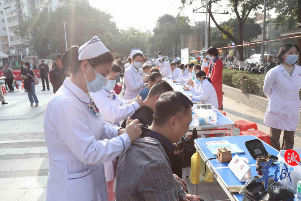 在活动现场,医护人员耐心细致地为群众免费提供咨询、诊疗和血压测量等医疗服务,对日常保健、常见病、多发病的预防和健康生活方式进行医学宣传科普,深受群众欢迎。