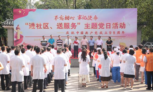 7月1日上午,为庆祝中国共产党诞辰98周年,共庆党的生日,围绕“不忘初心,牢记使命”主题教育,南方医科大学中西医结合医院与华洲街道党工委、龙潭经济联合社党委联合举办党员“进社区、送服务..