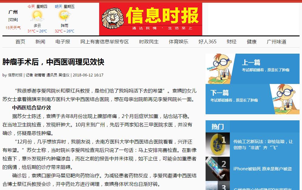 “我很感谢李爱民院长和蔡红兵教授,是他们给了我妈妈活下去的希望,真的很感谢他们,是他们救了我妈妈,真的太感谢了”。短短的一句话,重复了三次感谢,袁姨的女儿苏女士拿着锦旗站在南方医科大学中西医结合医院院长办公室门口,想在母亲出院前再见李爱民院长一面。