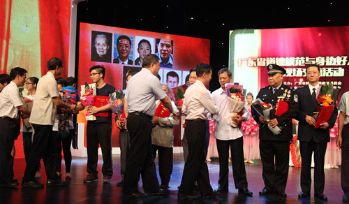 4月29日上午,2014年第四季度广东省道德模范和身边好人现场交流活动在中山市中山广播电视台演播大厅进行,来自全省的19名广东好人及亲属代表参加活动,现场共有8名广东好人的先进事迹作了播映和现场交流,被评为“广东好人”的南方医科大学中西医结合医院急诊科贺运河主任受到邀请,由于本人骨髓移植术后尚在恢复期不便出席,由其儿子贺翊峰和急诊科同事曲宏达副主任代表出席了交流活动,在与主持人的互动交流中,主持人及在场观众多次被贺主任的事迹感动落泪。现场交流会上,中西医结合医院还为中山市奋不顾身救人的被评为2014年度“中山好人”的翁强枝船长等人赠送了他们急需的一些常用药品和保健品。