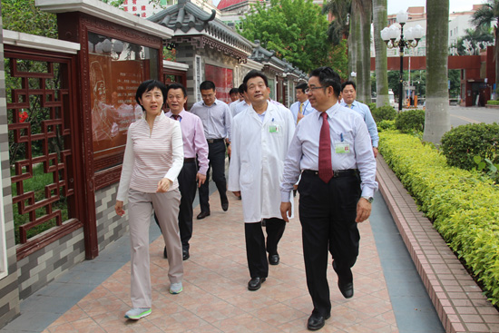 蒋司长一行先对院区进行了实地考察,之后听取了罗荣城院长代表医院所作的主题汇报和针灸推拿科周国平主任作“中医单元诊疗创新模式”的专题报告。周主任从中医单元诊疗模式产生的背景、内涵、实施目标、实施方法、工作思路和工作计划六方面进行了汇报。