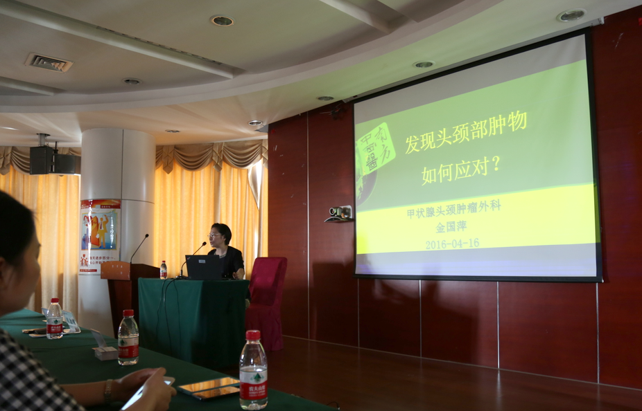 头颈甲状腺肿瘤外科主任金国萍教授在工商银行清远分行讲课