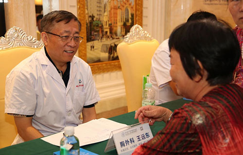 一市民义诊后紧握胸外科主任王远东教授表示感谢