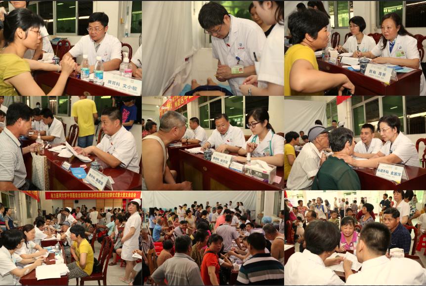 签约挂牌仪式结束后,两院举行了大型联合义诊活动。南方医科大学中西医结合医院肿瘤科、胸外科、治未病中心、针灸推拿科、妇科、头颈甲状腺外科、普外科、骨伤科等国家级重点学科、专科组成的10余名专家免费为当地居民提供问诊服务和健康指导。