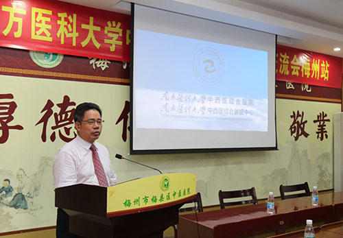 为了加强两院医务人员的学习交流,南方中西医院长、南医大肿瘤中心主任、国家二级教授、博士生导师罗荣城教授与国家中医药管理局重点专科针灸推拿科主任周国平教授就《肿瘤精准医学及生物免疫治疗de是非曲折》、《中风病的中西医结合康复治疗》为讲题分别向梅县区中医医院及周边医疗机构的基层医生做了学术报告,100余名基层医生慕名到场听课。