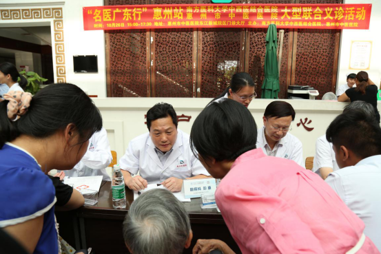 10月26日,由南方医科大学中西医结合医院(南方医科大学中西医结合肿瘤中心)发起并联合广州日报主办的 “名医广东行”大型健康公益活动走进惠州,在中共惠州市委老干部活动中心和惠州市中医医院共举行了1场健康科普讲座和2场大型义诊活动,共为700余名群众提供免费问诊服务。