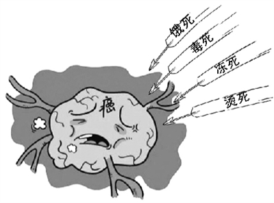 罗荣城说,人们经常关注一些新奇的说法。其实,所谓“毒死”癌细胞就是用化疗药,“冻死”就是用冷冻疗法。如果要这么说,那么放疗就是“照死”癌细胞,光动力疗法就是“晒死”,微波疗法就是“烫死”……“归根结底,这些都是物理化学手段,最终让肿瘤细胞死掉。但杀死癌细胞没那么简单,单一方法不可能100%解决肿瘤治疗的全部问题,搞不好还可能杀伤免疫细胞和其他正常细胞。”罗荣城说,“酸性体质致癌”、“苏打水防癌”理论都是谣言。天然苏打水对酸中毒、尿酸过多等患者有一定益处,但喝苏打水防癌,目前没有任何理论和试验依据。而且,苏打水含钠高,长期大量喝,会增加高血压风险,得不偿失。