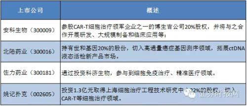 目前A股市场上出现了众多拥有免疫治疗产品的上市公司,其中不少于近年来通过参股收购等方式快速切入其中。除了中源协和意外,下述公司也具有“免疫疗法”概念股。