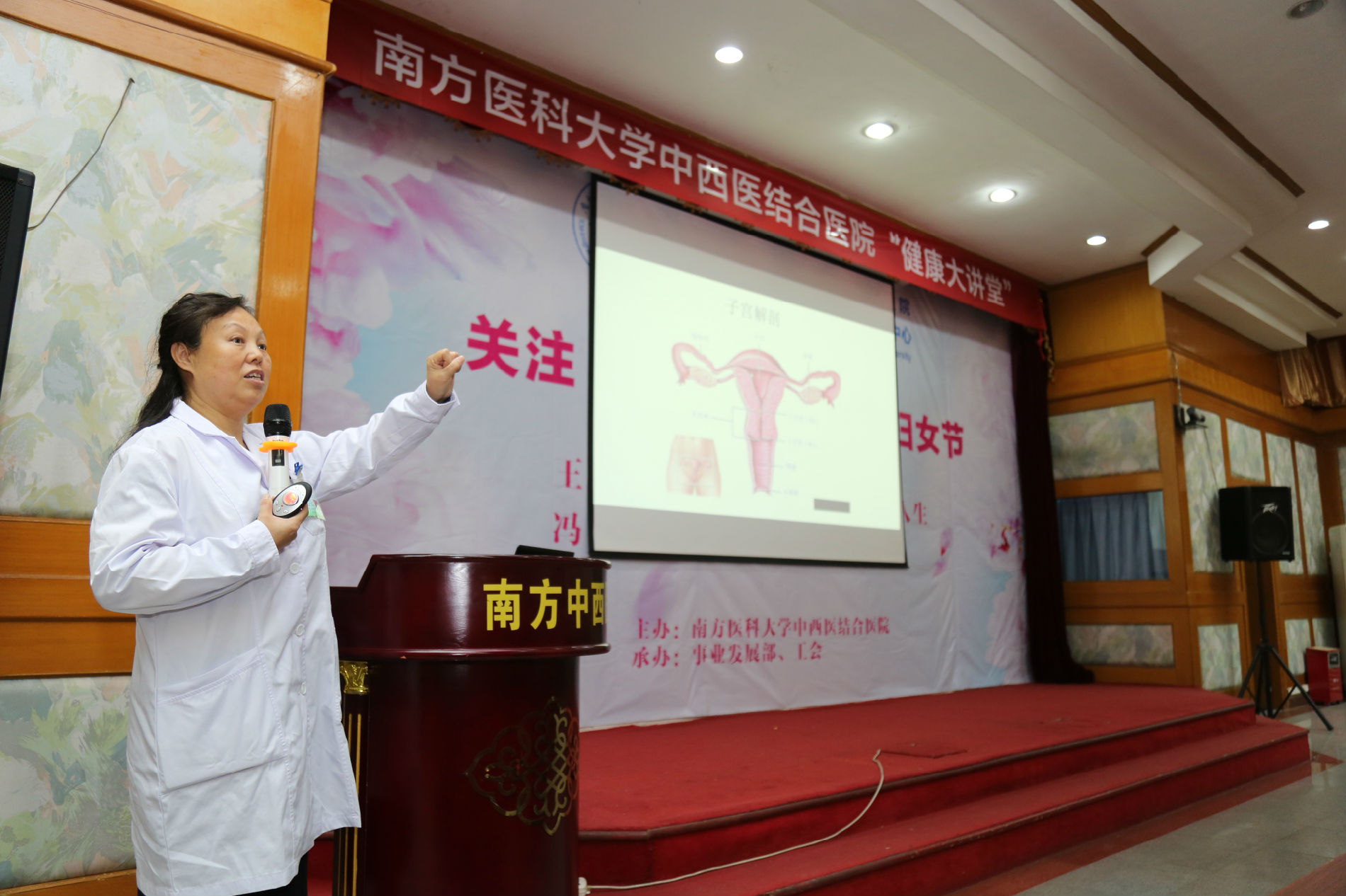 同时,为感谢长期以来关注和支持医院的社区人员,医院工会联合事业发展部于3月7日上午开展了“关注‘半边天’,健康妇女节”专题公益活动,王远东教授和冯忻教授为《健康大讲堂》现场听众科普乳腺及妇科疾病防治知识,同时邀请陈国奋教授、金国萍教授为听众义诊,并送出了精美小礼品、免费骨密度检测及30份888元的健康体检大礼包,4位专家共为100余名听众送健康,受听众一致好评。