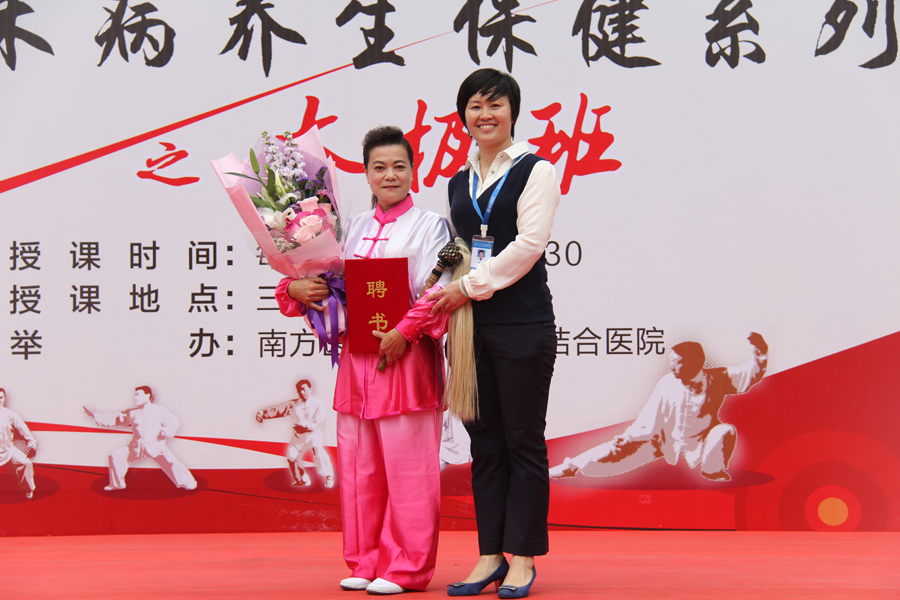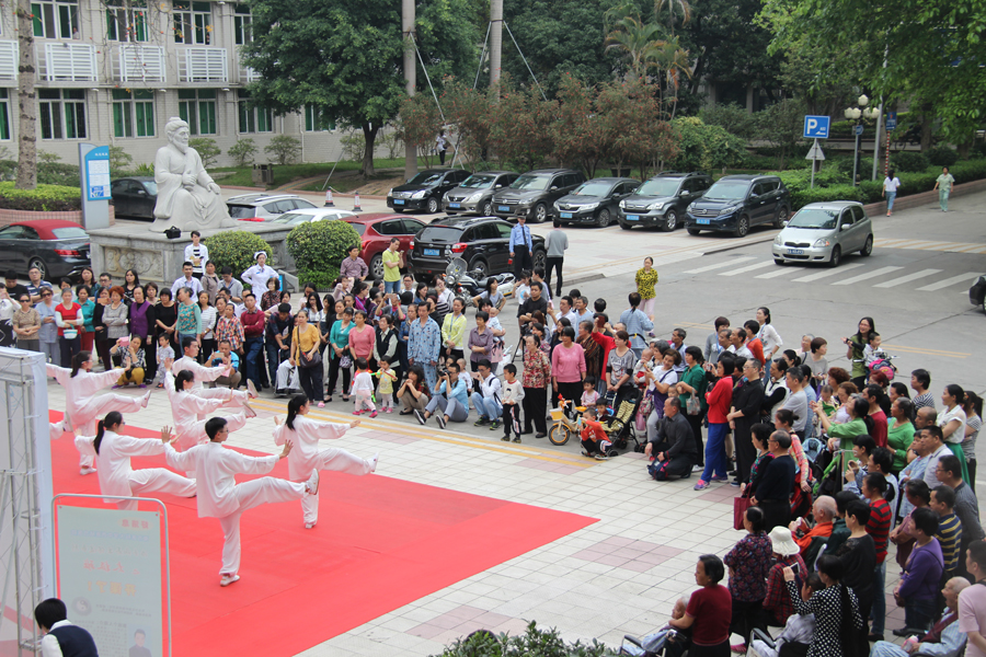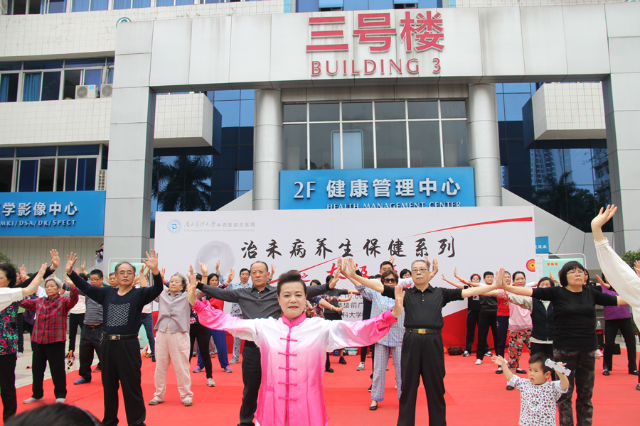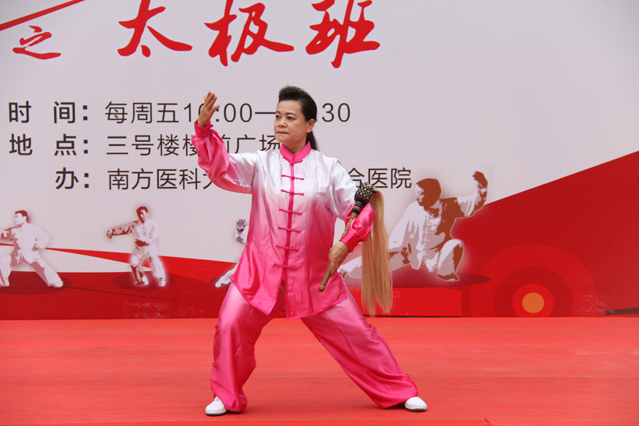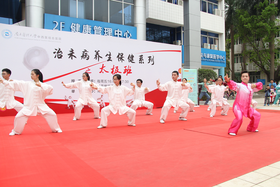 为大力弘扬中医传统文化,推动国粹事业的发展,促进全民养生意识,4月7日下午,南方医科大学中西医结合医院工会联合事业发展部、宣传科等多个部门共同开展的治未病养生保健系列活动之太极班正式免费开课,曾多次获得国际大赛金牌的杨式太极拳第七代传人张恢琳老师受聘担任教练,近300名观众慕名参加活动,并参与互动。