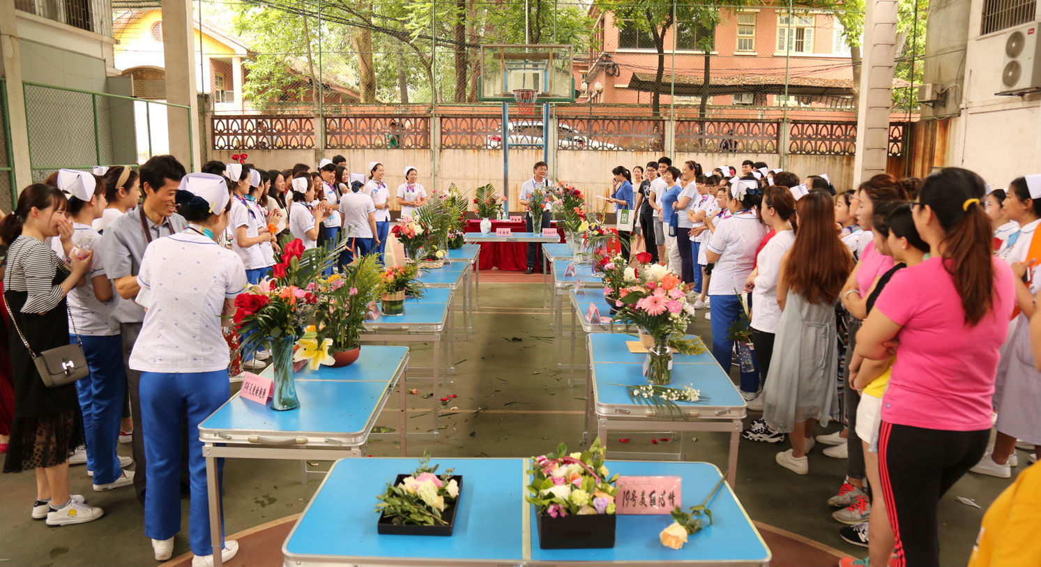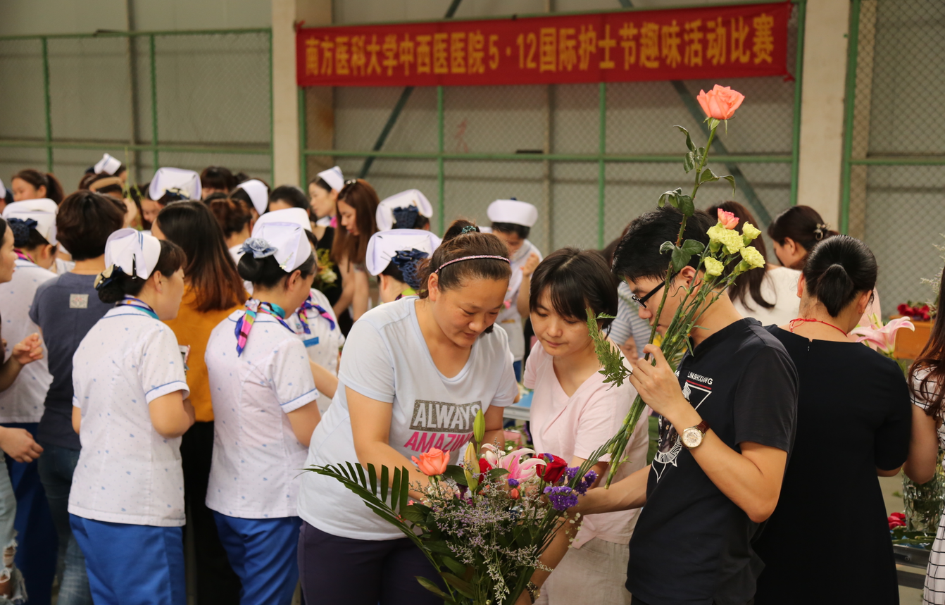 由护理部、宣传科、工会共同举办的插花比赛5月12日下午在灯光球场拉开序幕,李爱民副院长(主持行政工作)在致辞中向辛勤工作的护理人员致以节日的问候,希望大家在快乐中工作,能获得越来越多的幸福感。随后,李爱民副院长、朱晓光副院长为医院护理实习生们赠送玫瑰花,热烈欢迎他们到我院实习。
