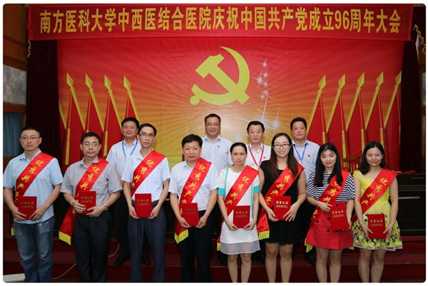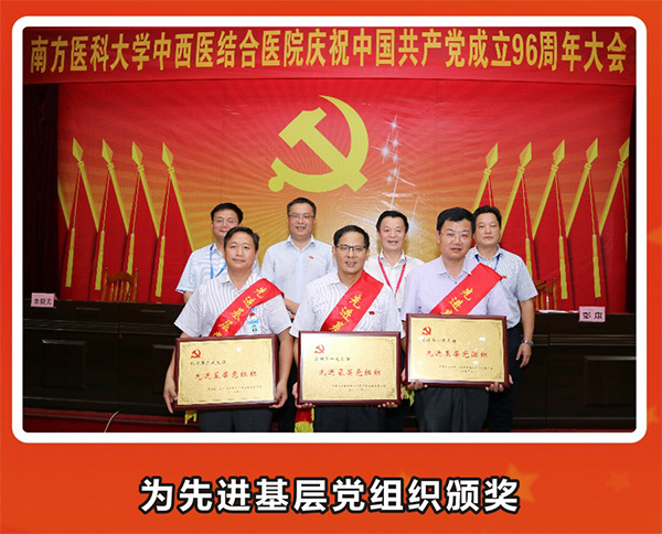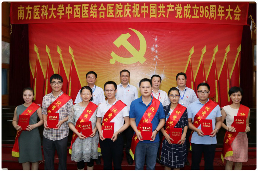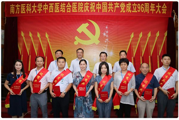 大会在雄伟庄严的国歌声中拉开了帷幕。彭康常务副书记宣读了南方医科大学中西医结合医院《关于表彰2017年度优秀共产党员、优秀党务工作者和先进基层党组织的通报》,授予魏朝艳等32名共产党员“优秀共产党员”称号,授予彭康、皮玲两名同志“优秀党务工作者” 称号,授予机关第三党支部、医辅第一党支部、临床第一党支部3个党支部 “先进基层党组织”称号。之后院领导们分别为获得表彰的集体代表和个人颁发了奖牌和荣誉证书。