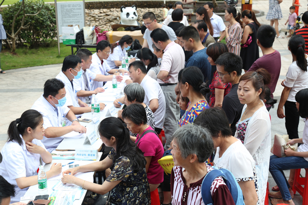 本次活动分别由南方医科大学中西医结合医院常务副书记彭康教授、医院副院长朱晓光教授带队,医院脑病科、泌尿外科、治未病科、针推康复科、脾胃病科、肿瘤科、妇科、胸外科、骨外科、内分泌代谢科、皮肤科等重点学科、专科组成的12名专家免费为市民提供问诊服务、科普讲座和丰厚的健康福利,总共三场活动受到热烈反响。