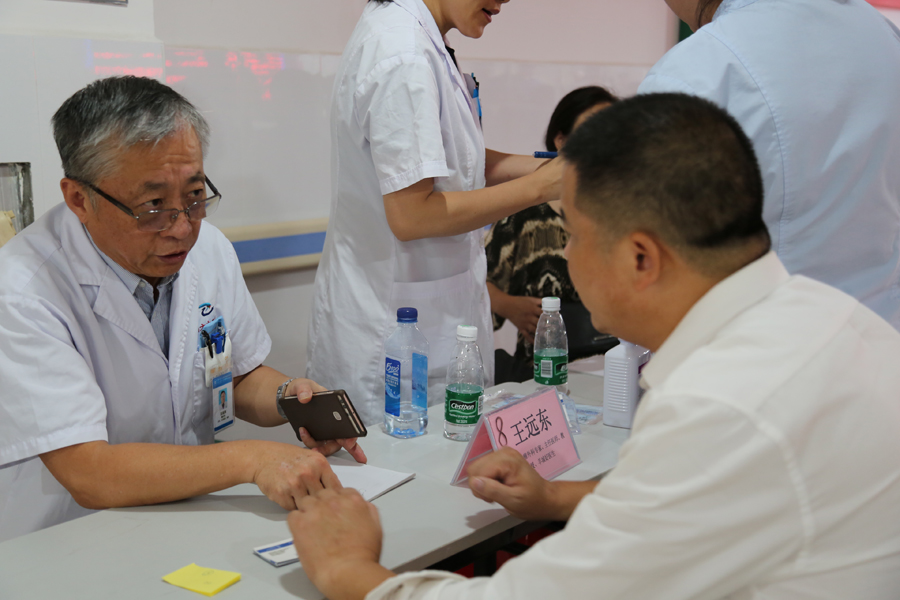 本次活动由南方中西医常务副书记彭康教授带队,医院中医科、胸外科、脑病科、心血管病科、脾胃病科、腹外科、妇科、内分泌代谢科等共派出8名专家免费为近150人次市民提供健康服务,义诊现场火爆,专家们应接不暇,时近12点,专家诊桌前还围着患者问诊。住新围村的陈先生说:“母亲患脑梗多年,治疗效果不理想,听说陈俊抛主任过来义诊,专门关了店铺门带她过来看看”。