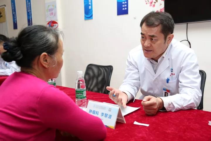 李爱民院长(右)在义诊现场给居民耐心讲解