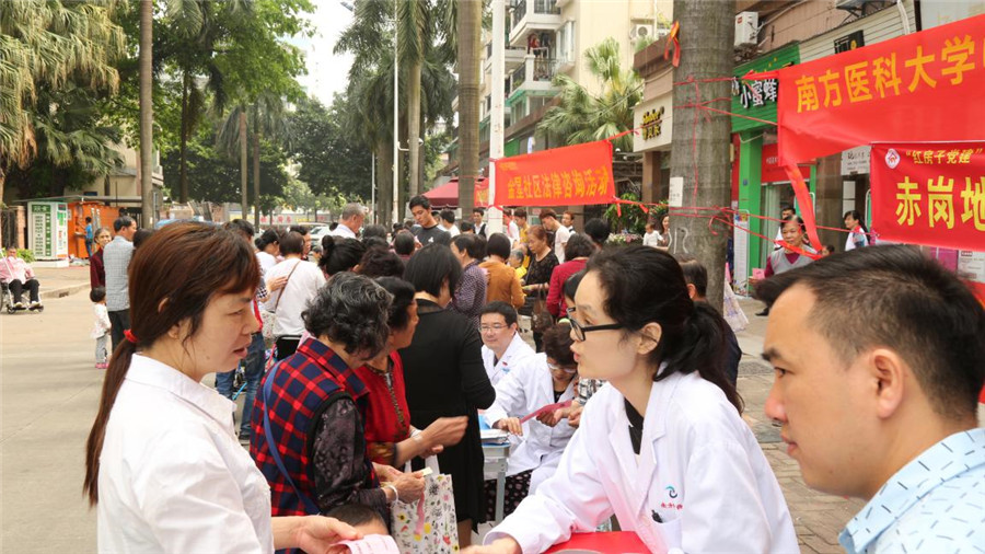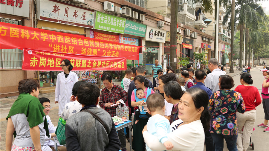 3月30日,南方中西医贺运河学雷锋医疗服务队联合海珠区赤岗街金星社区居委会,在信步闲庭小区开展了“进社区,送健康”义诊活动,受到居民们的热烈欢迎。